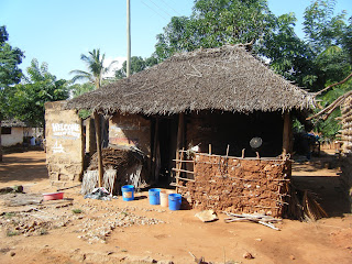 The machine removed the skins of the berries allowing for the beans to be separated. Before the beans were ready for roasting they are dried for 1 week to 1 month (however the ones we used had to be dried for almost 6 months as it had been a 'dull and cold' winter by Tanzanian standards). The ore-dried beans were then pounded in a giant wooden mortar and pestle to crack the now brittle hard coating off, this coating was then separated by throwing it up in the air as shown to the right. Now the fun could begin!